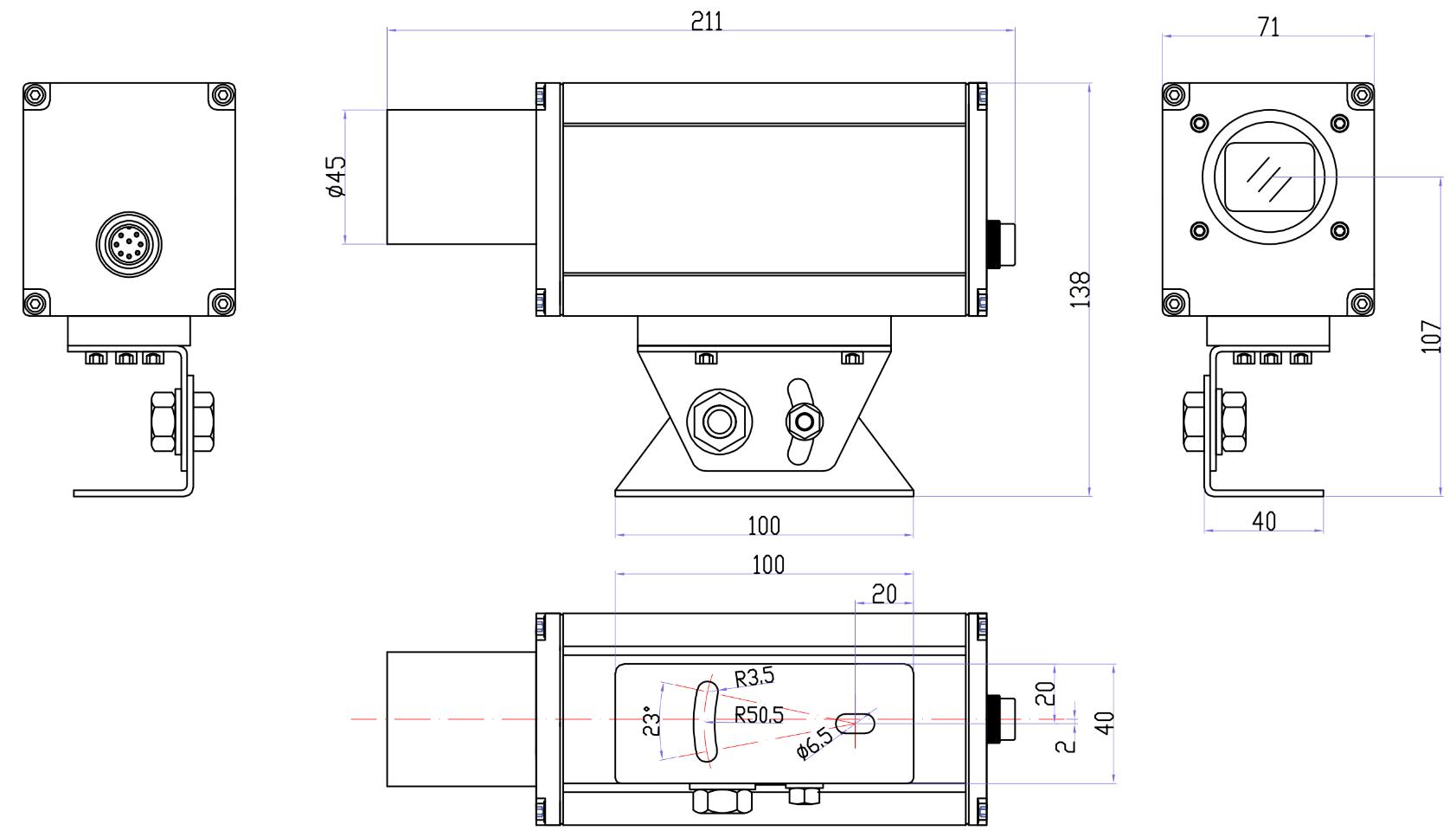 ● 可调节装置支架,合金铝外壳,防护品(pin)级IP65