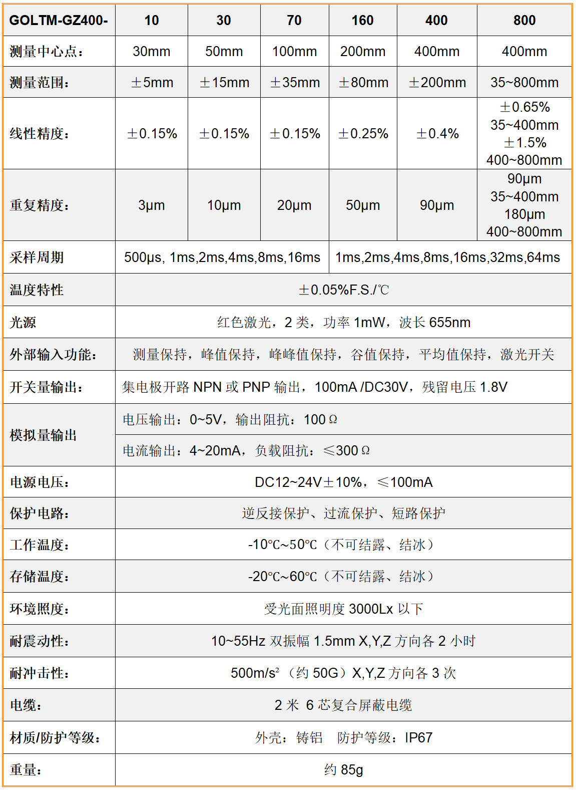 GOLTM-GZ400产品紧密配合缴光测距仪要用于高高精准度、高传输率的精确测量物件位移、长宽、的的高度及的的高度差,设备调节概括,科技显示正反精确测量值和摹拟量发送及打开量发送。● 激光三角🦄(jiao)形(xing)丈量道(dao)理,高(gao)(gao)精度、高(gao)(gao)速(su)率、高(gao)(gao)活络度丈量细小位移